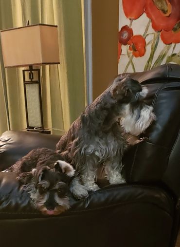 Schnauzers are hardy, merry little animals that were first breed in Germany. Our toy/ miniature schnauzers generally weighs between 8-15 lbs. Because of their wiry, double coat it helps keep the dirt off. And as a bonus they do not shed much. People with allergies have also discovered the schnauzer breed seems to be hypo-allergenic. Previous